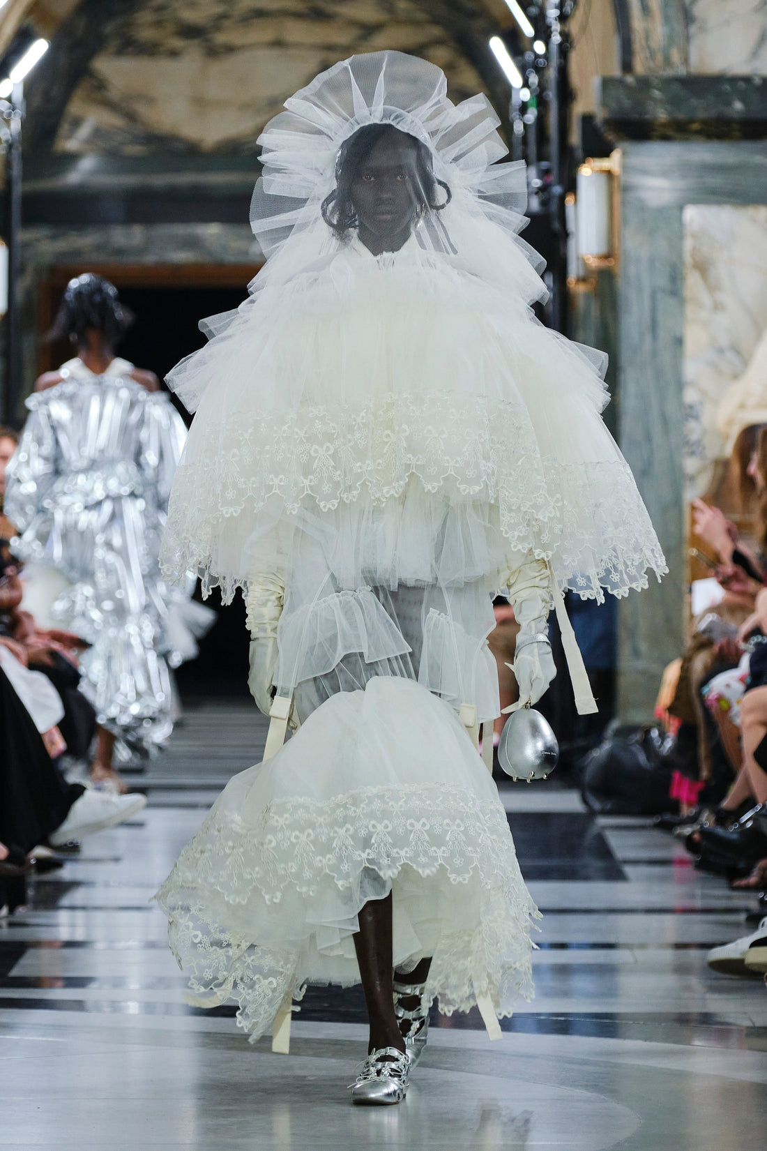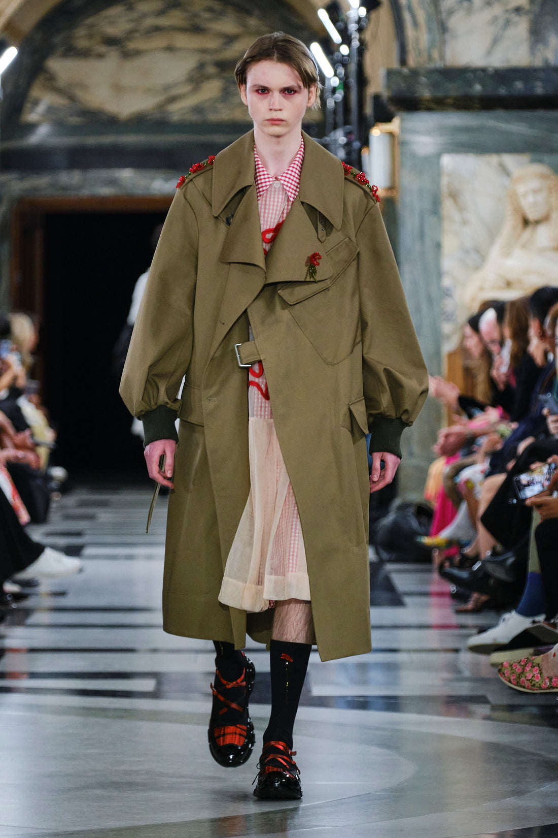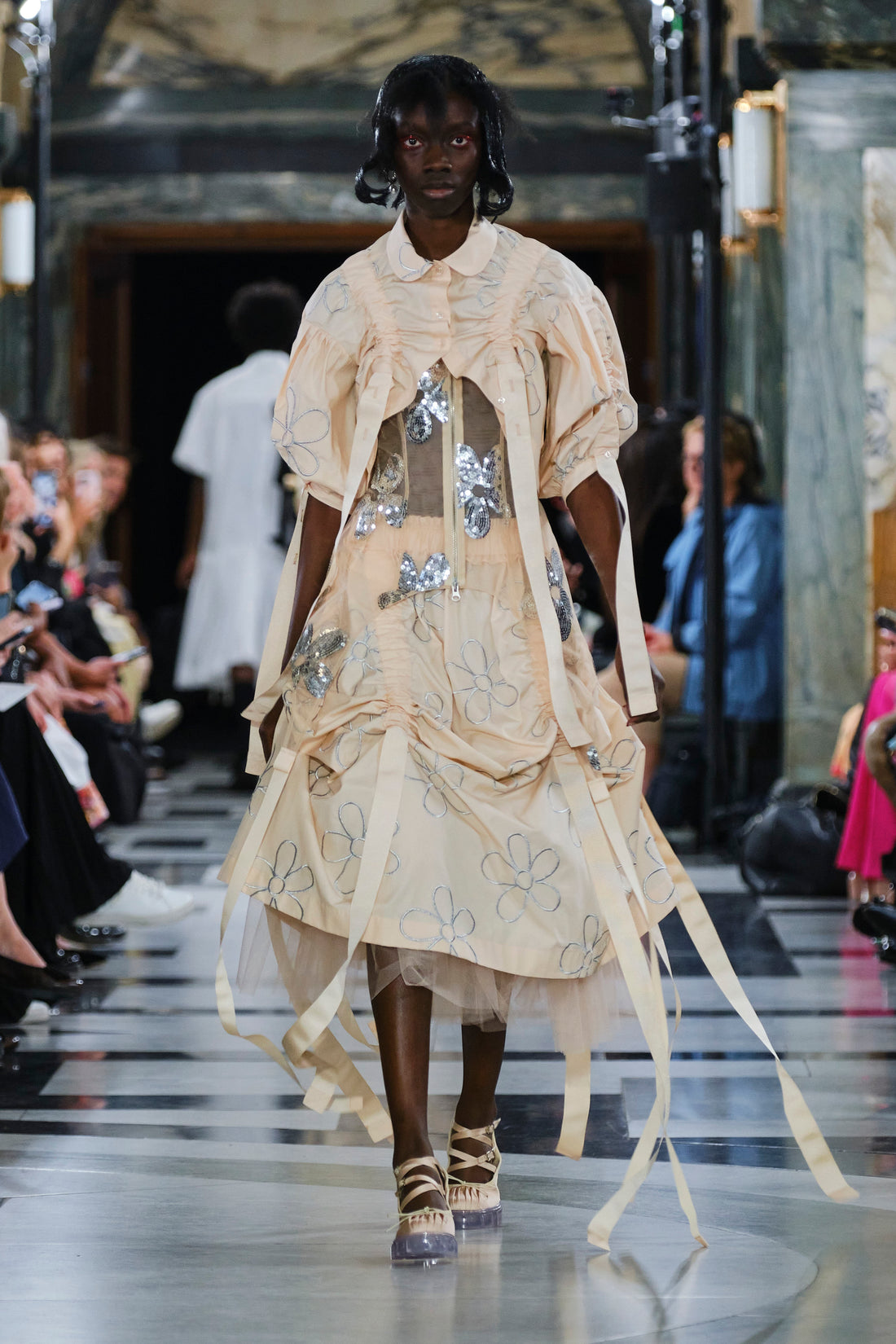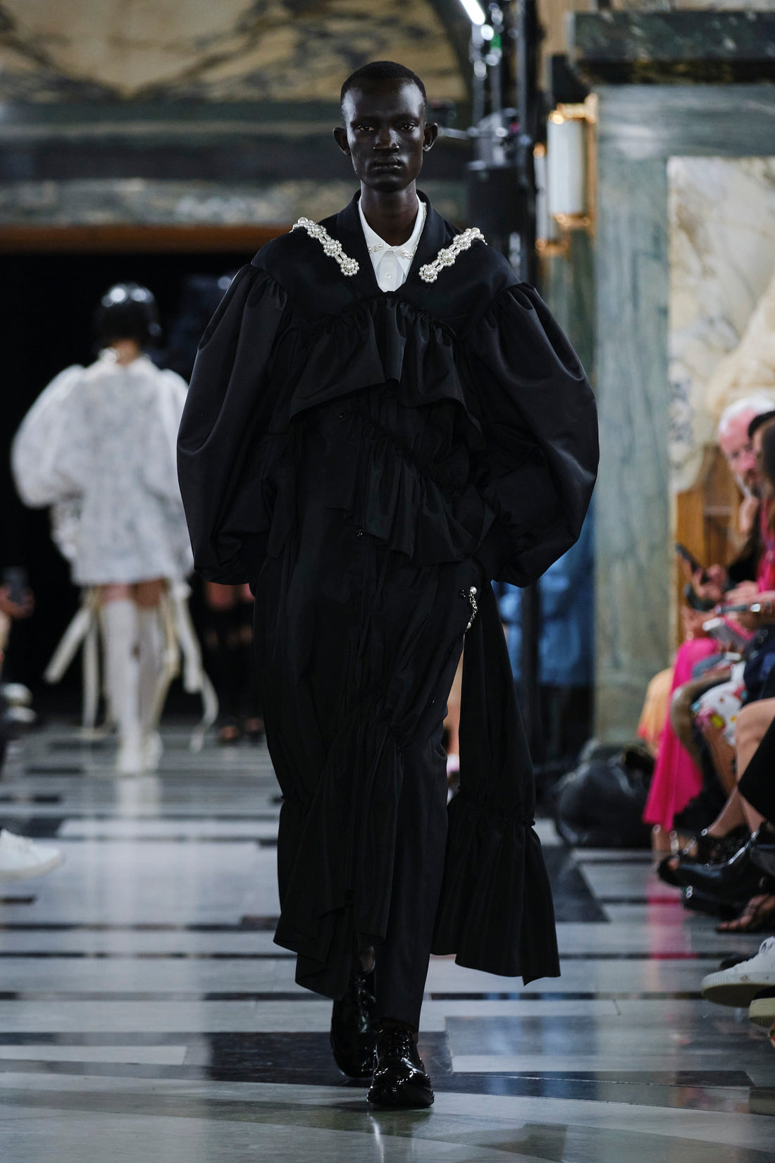 Quilted tulip faille coats.