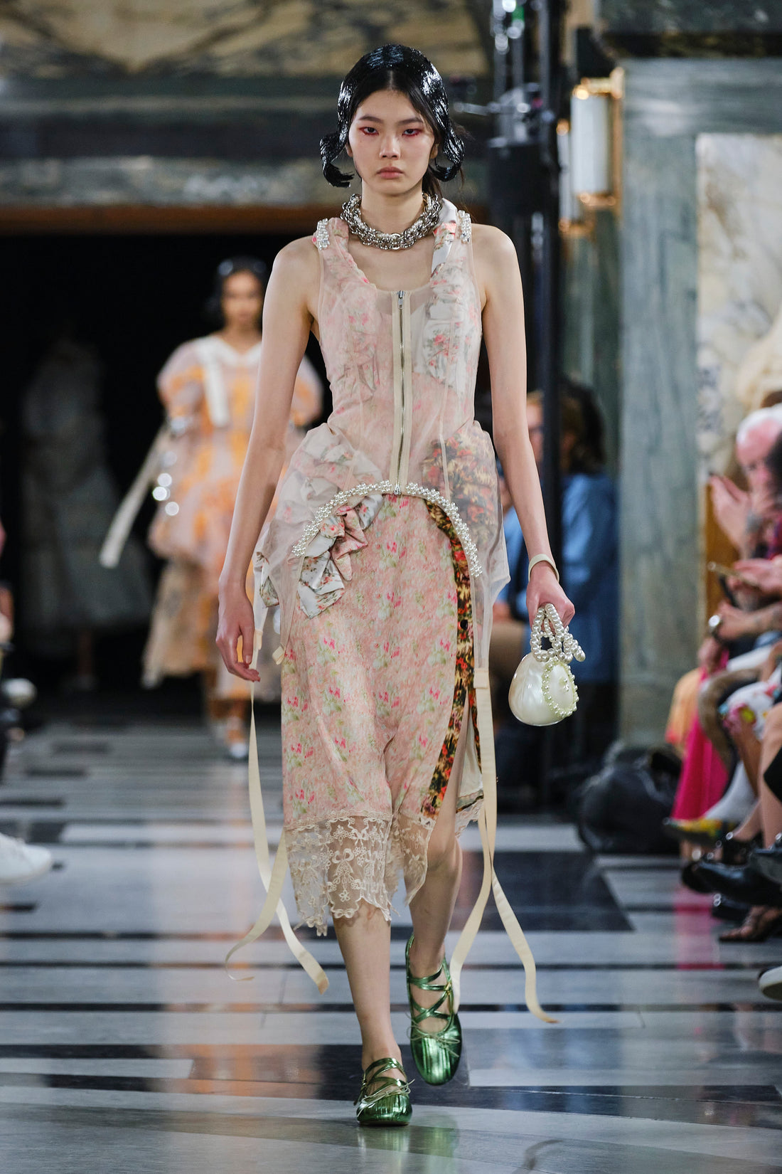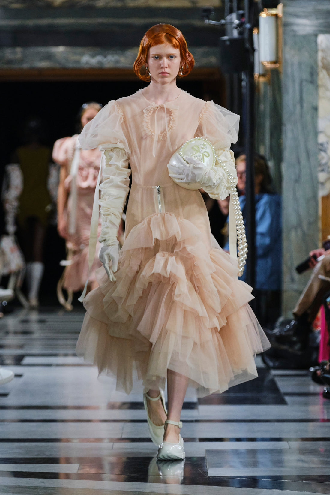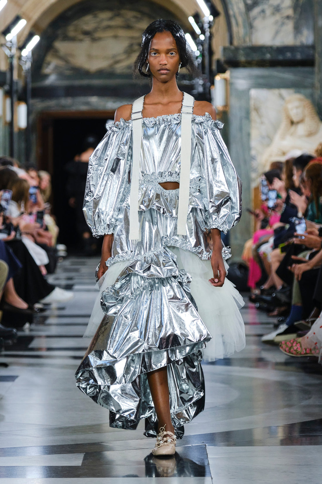 Quilted tulip faille coats.