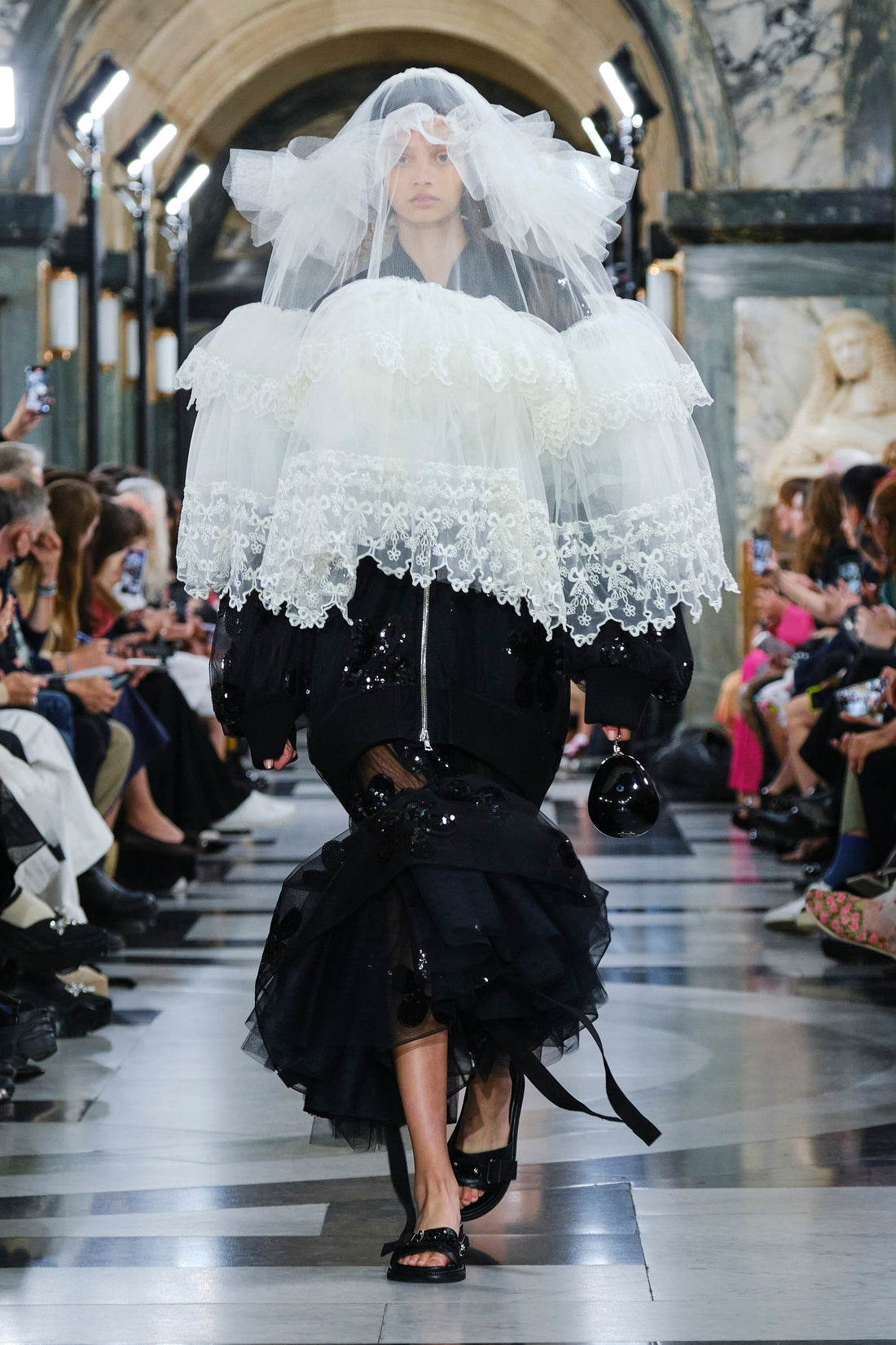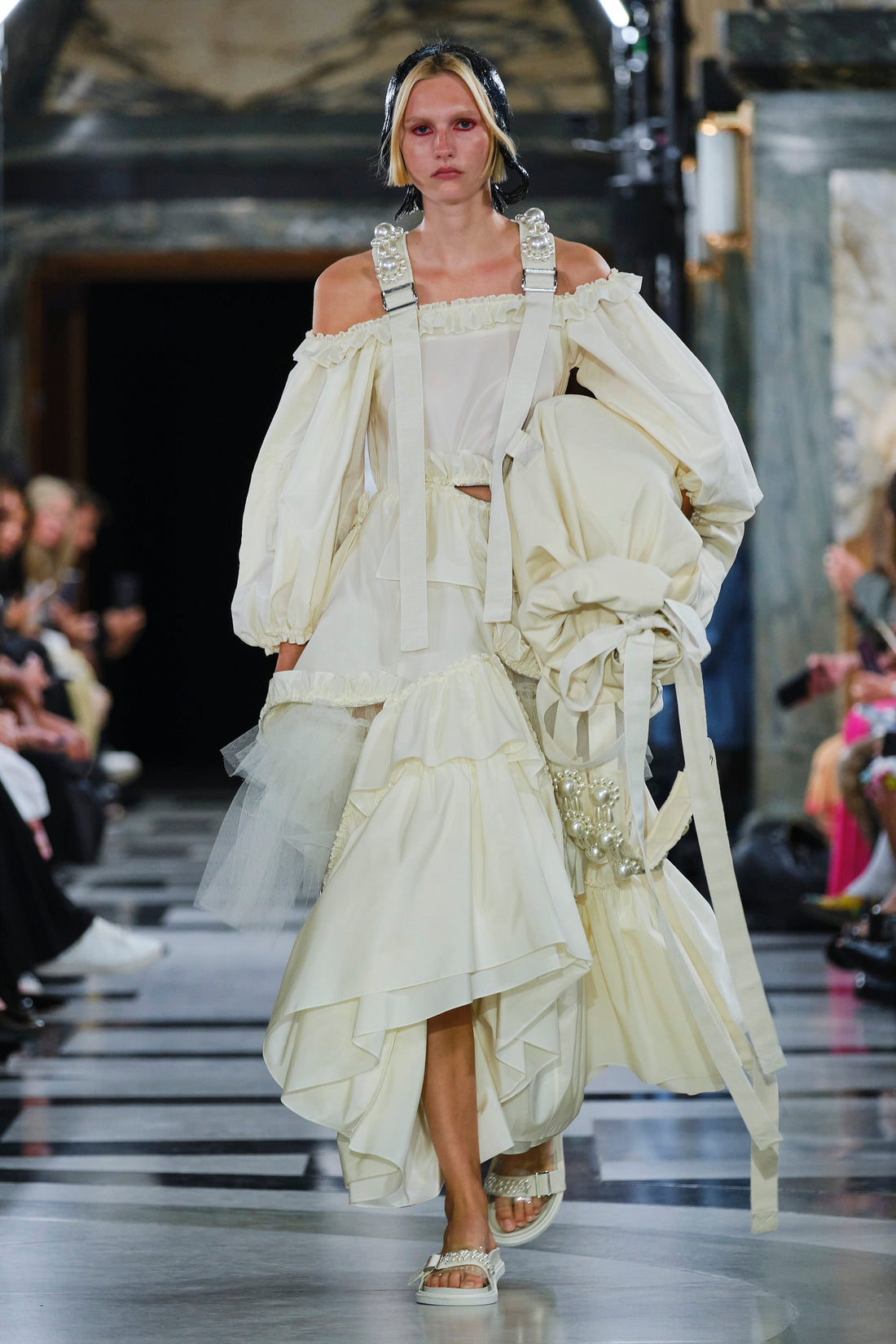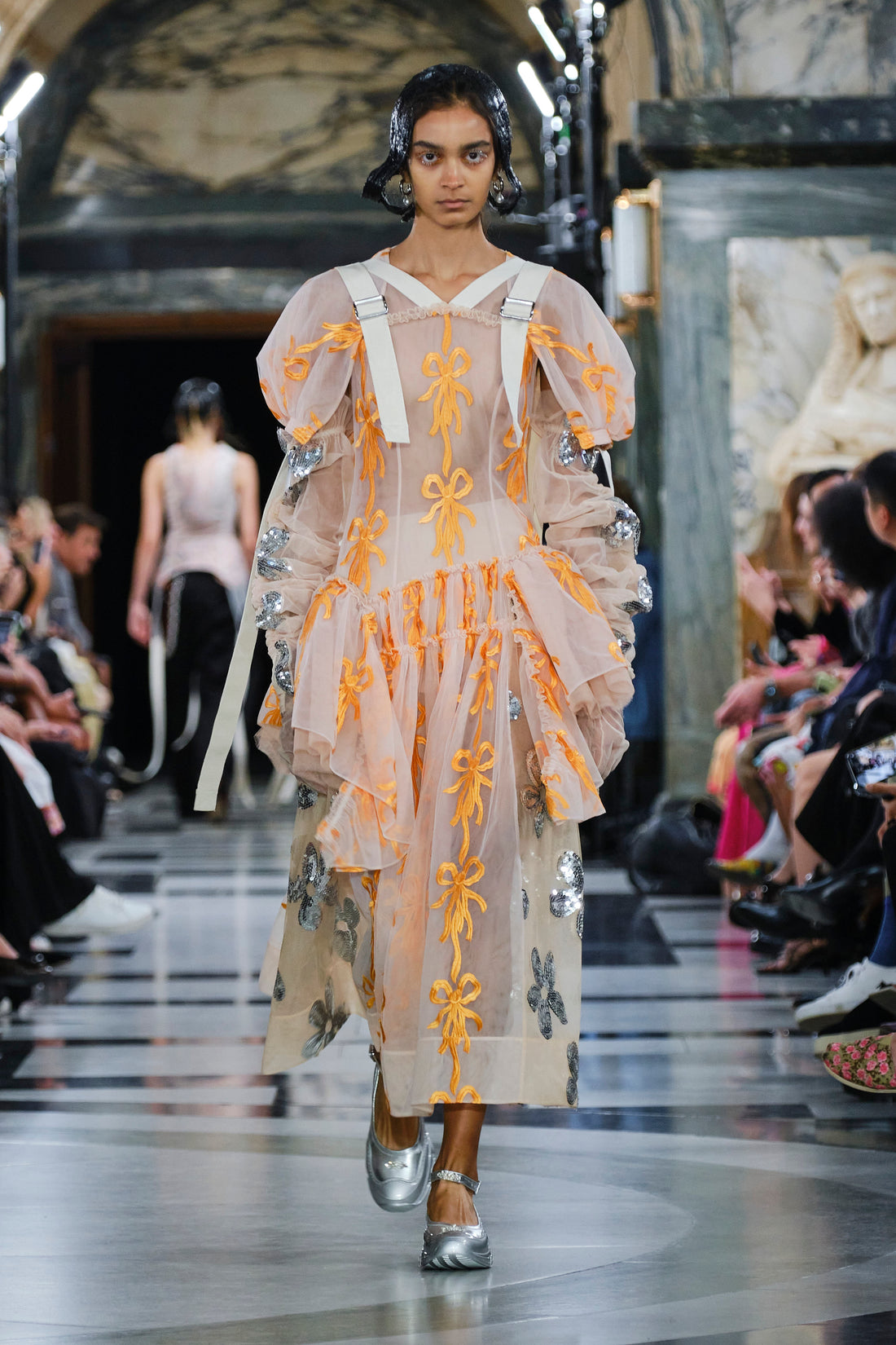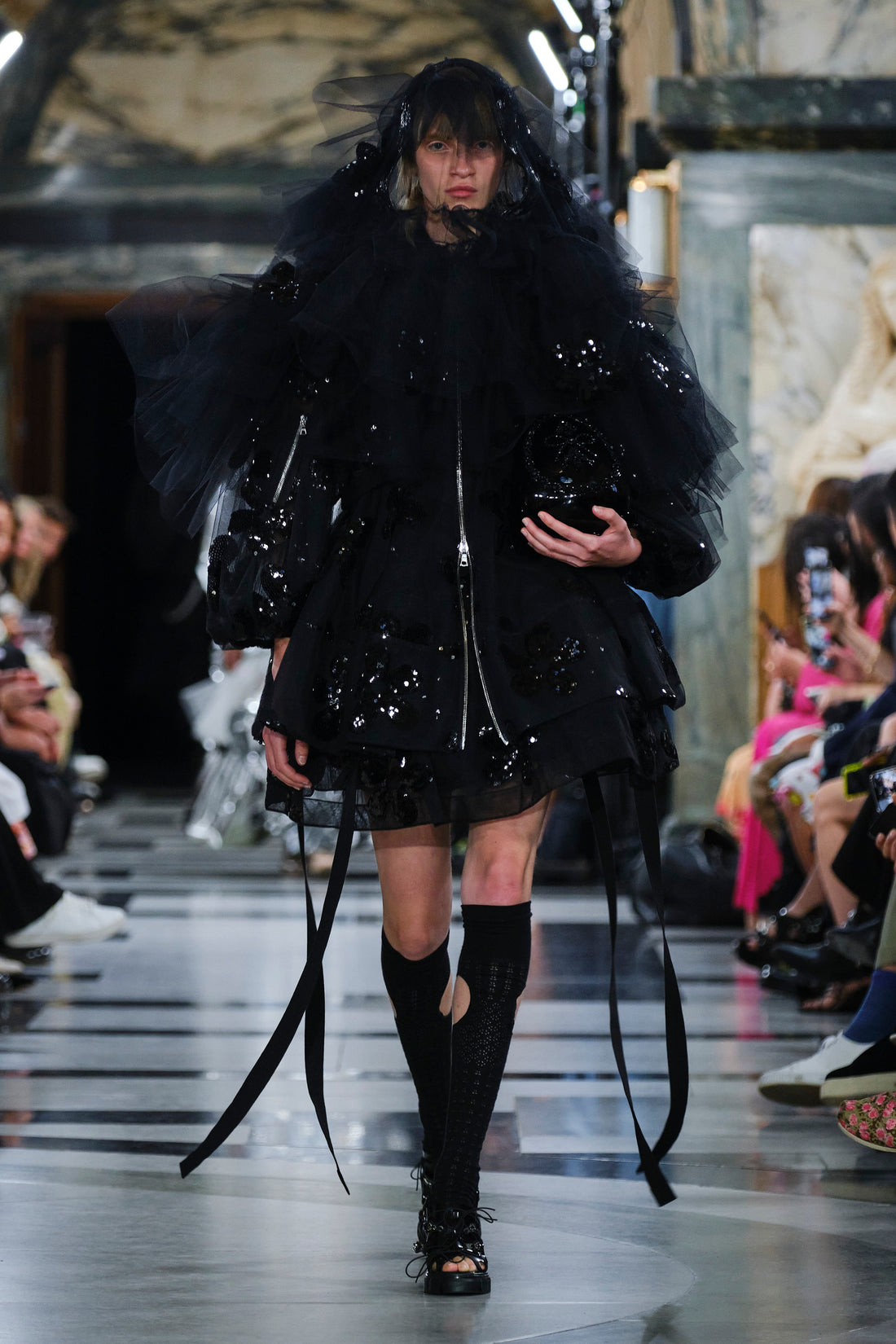Quilted tulip faille coats.