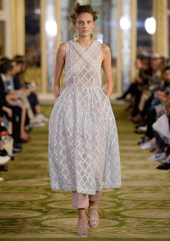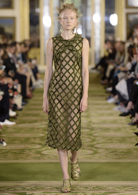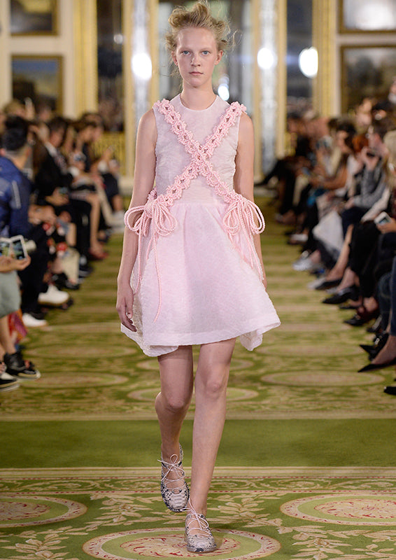 Kyoto, Kinbaku, the moss forest. Rope, bow, ties, bound, found. Pink Kimono tulle and wine. Tobacco stains, Tobacco sponge, black cloque. White embroidered plastiv. Man- made and natural, flowers and cars. Wire and grass in Khaki embellished rope. Crystal ears, jelly feet. Ropes and ties and tension, unison. I saw a bride in the bamboo forest.