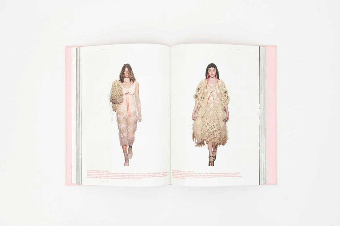 The book is insightfully edited, designed, and crafted, gathering catwalk images, shadowy editorials, and backstage imagery in a manner that stays true to the very nature of the dark and twisting world she’s created.