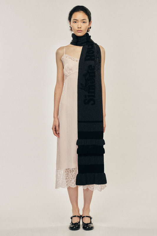 Ruffle Graphic Logo Knit Scarf