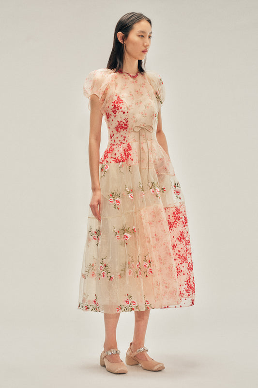 Sheer Puff Sleeve Patchwork Flounce Dress