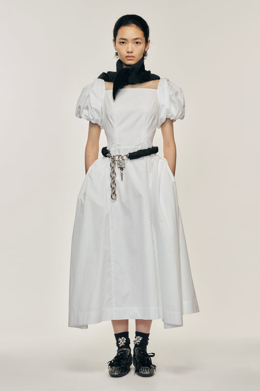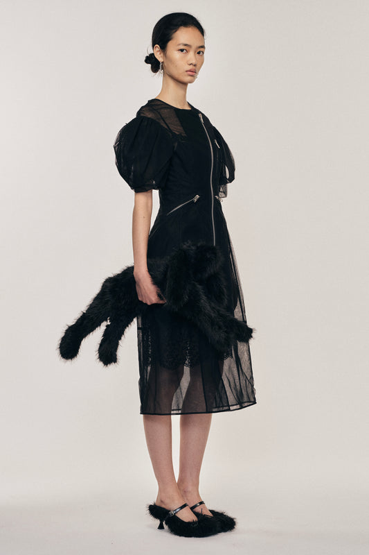 Sheer Bow Puff Sleeve Hip Tutu Dress