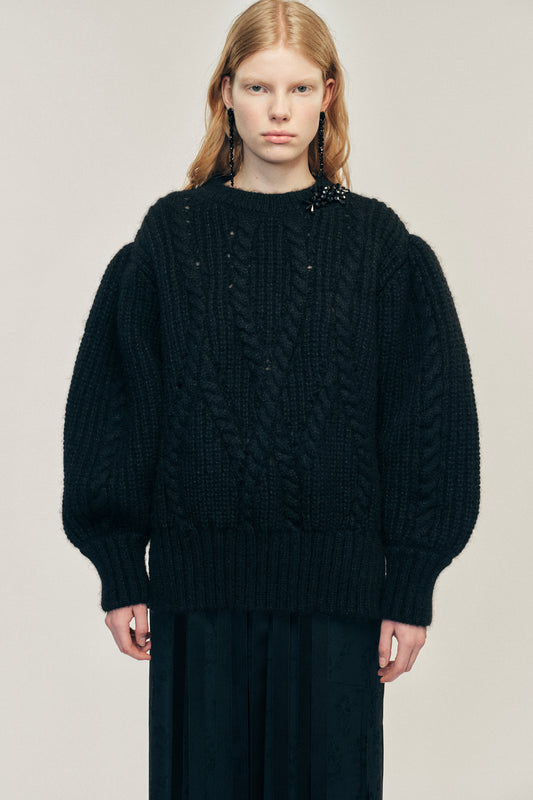 Embellished Puff Sleeve Chunky Knit Jumper