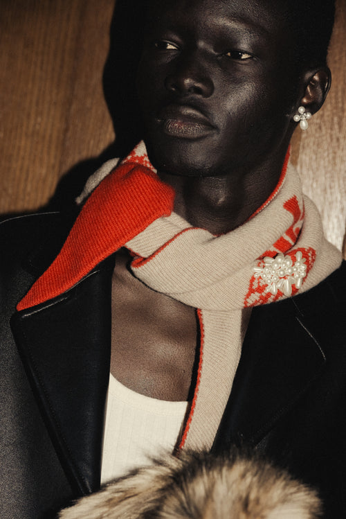 Long Graphic Logo Knit Scarf