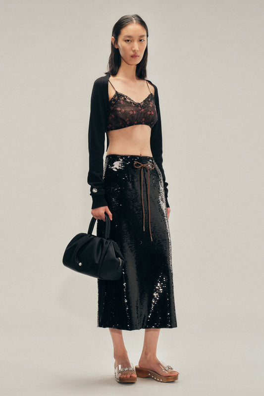 Embellished Cropped Merino Silk Cardigan