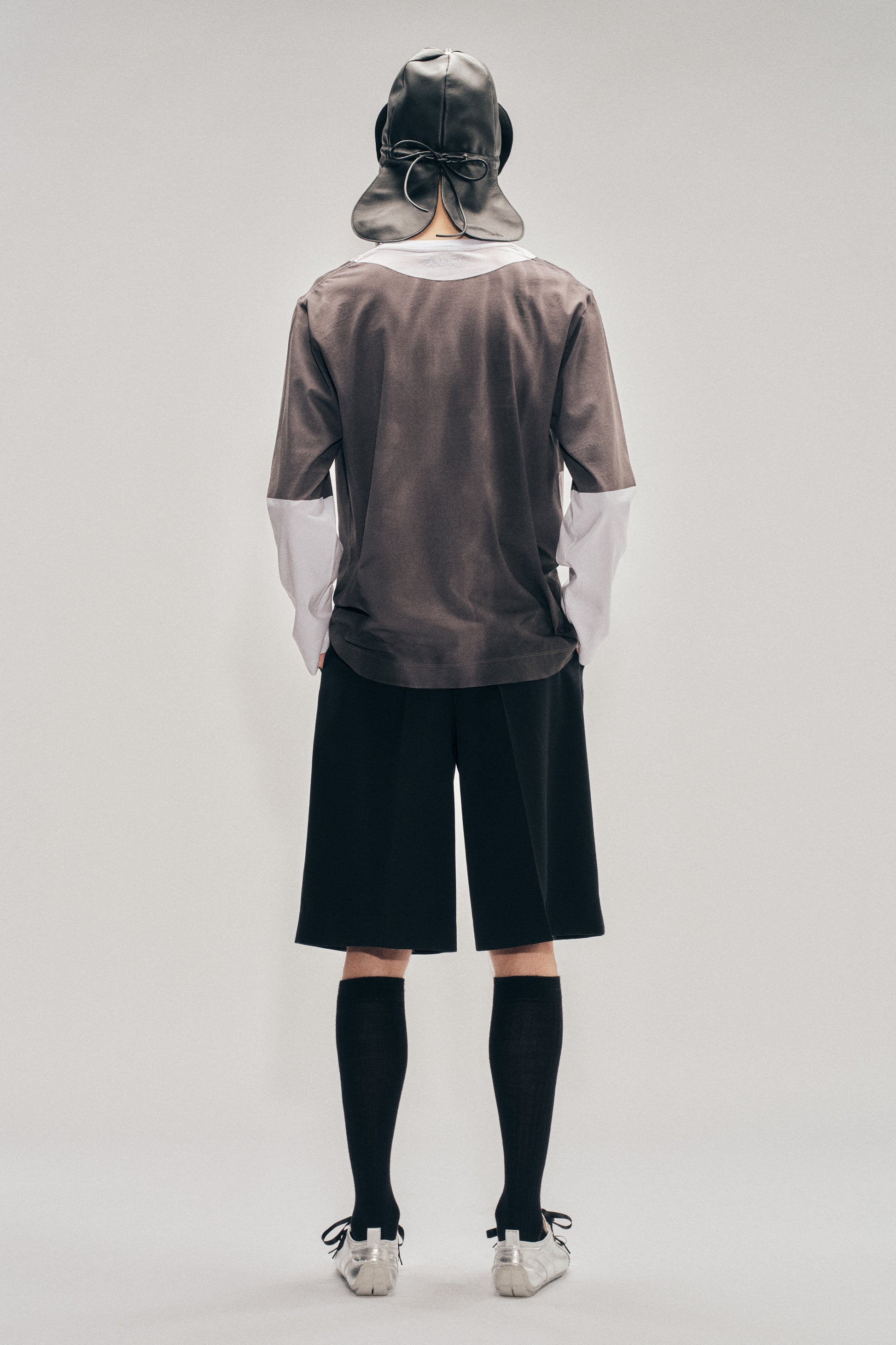 Tailored shorts in classic Venetian wool, featuring a wide hem and front pleats. Finished with belt loops and a buttoned tab adorned with the signature daisy pearl.
