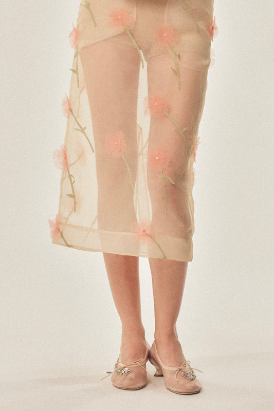 Carnation Organza Pencil Skirt