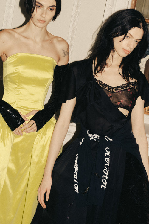 Bow Sash Slip Dress Trompe L'Oeil Print T-Shirt