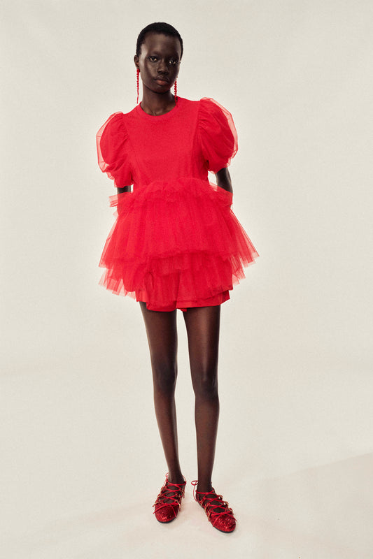 Cropped Ruffle Waist Trousers