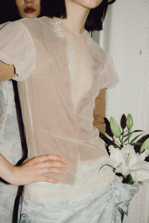 Sheer Puff Sleeve Patchwork Flounce Dress