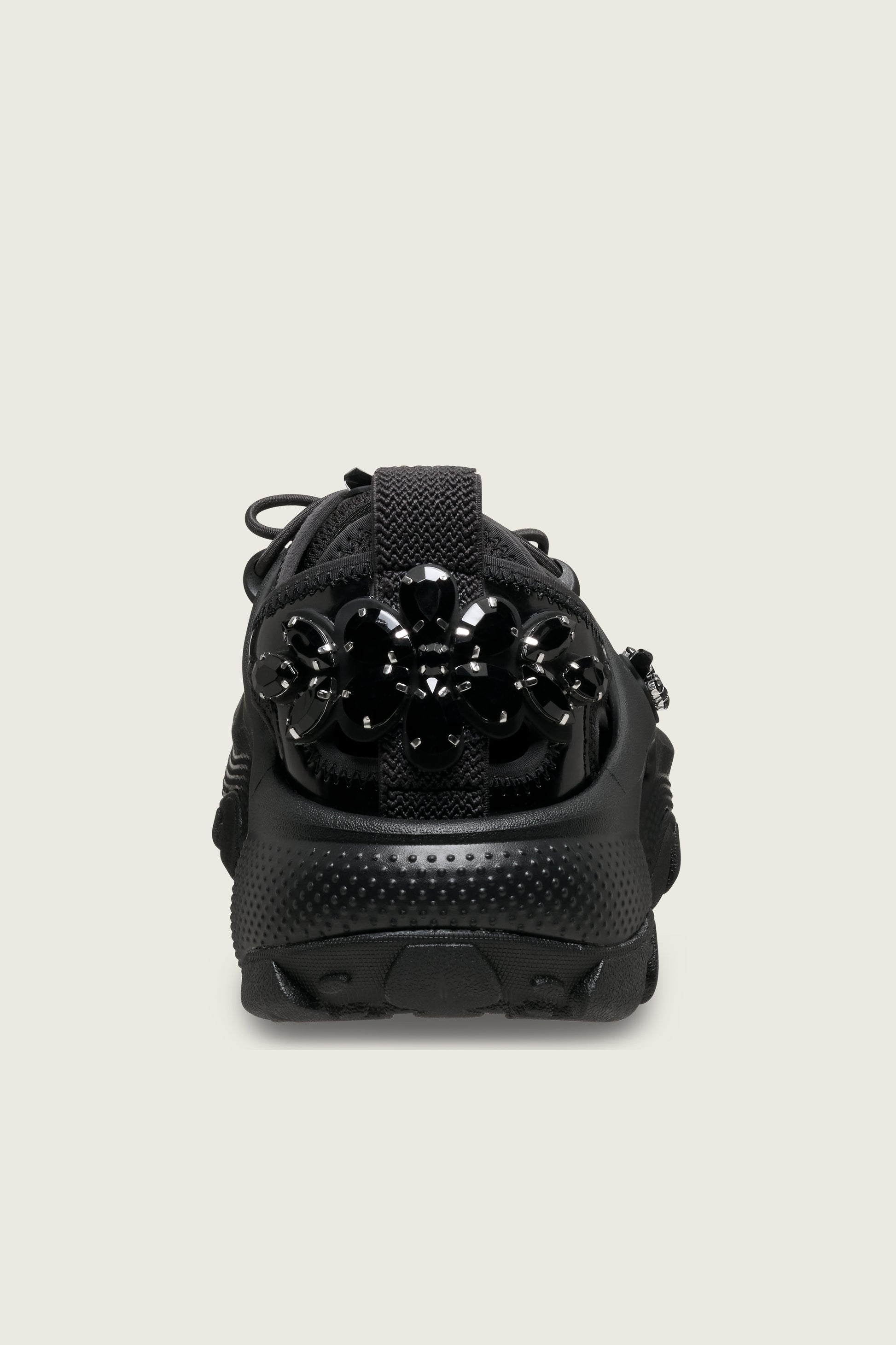 Simone Rocha x Crocs explores the creative juxtaposition of femininity and utilitarianism to bring to life new designs that marry Crocs’ iconic brand DNA with the Simone Rocha aesthetic. The eye-catching architecture of the Trailbreak finds new adornment with Simone Rocha’s signature embellishments. This Simone Rocha x Crocs exclusive silhouette melds the rugged functionality of the Trailbreak with a touch of opulence, crafting a look that is undeniably high fashion. Two classic colourways, Black and Oyster, give this style versatility for everyday or elevated wear.