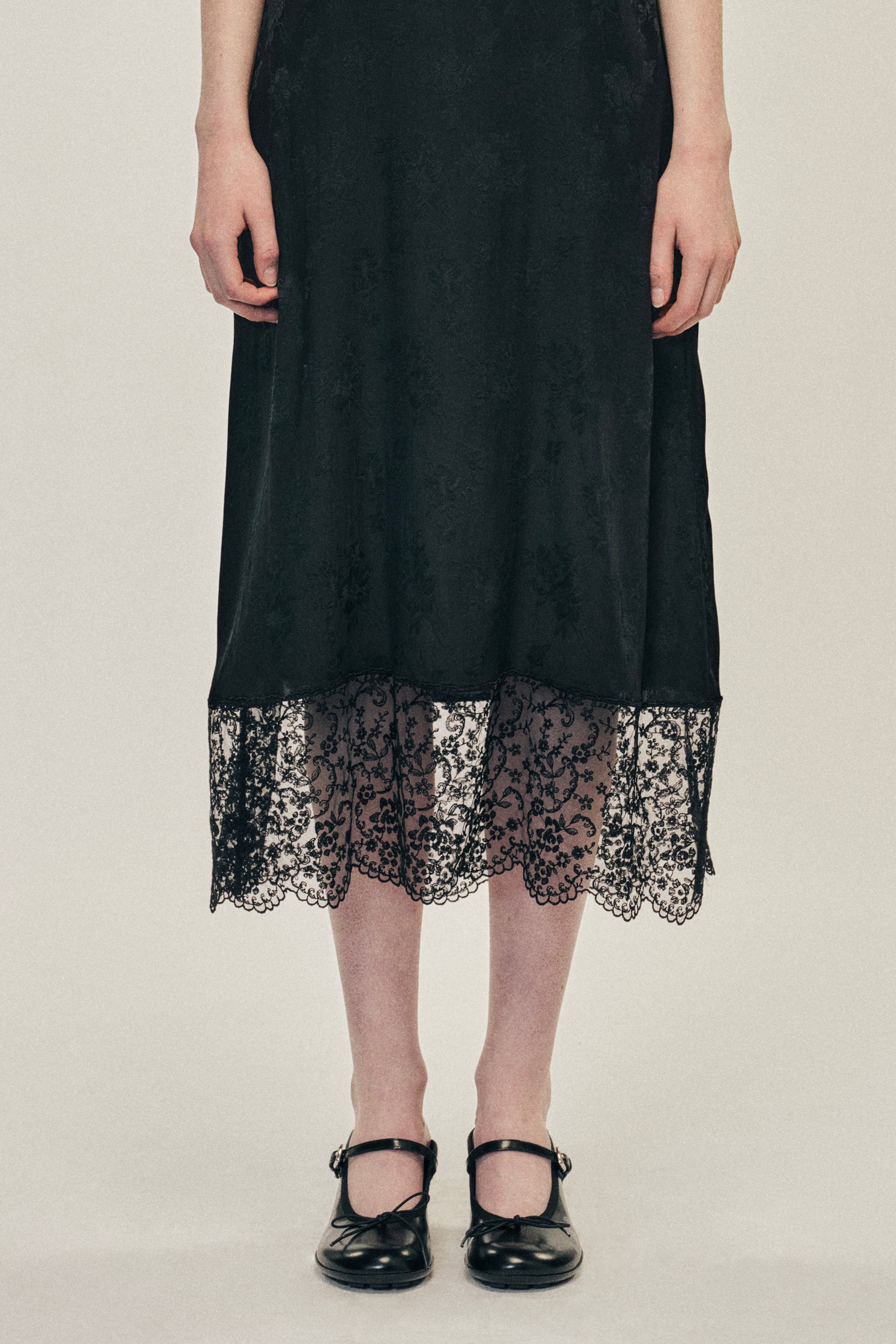 Our classic slip dress made in the seasonal tonal floral jacquard, fully finished with an embroidered lace trim. It can be worn on it's own or underneath a sheer tulle dress.