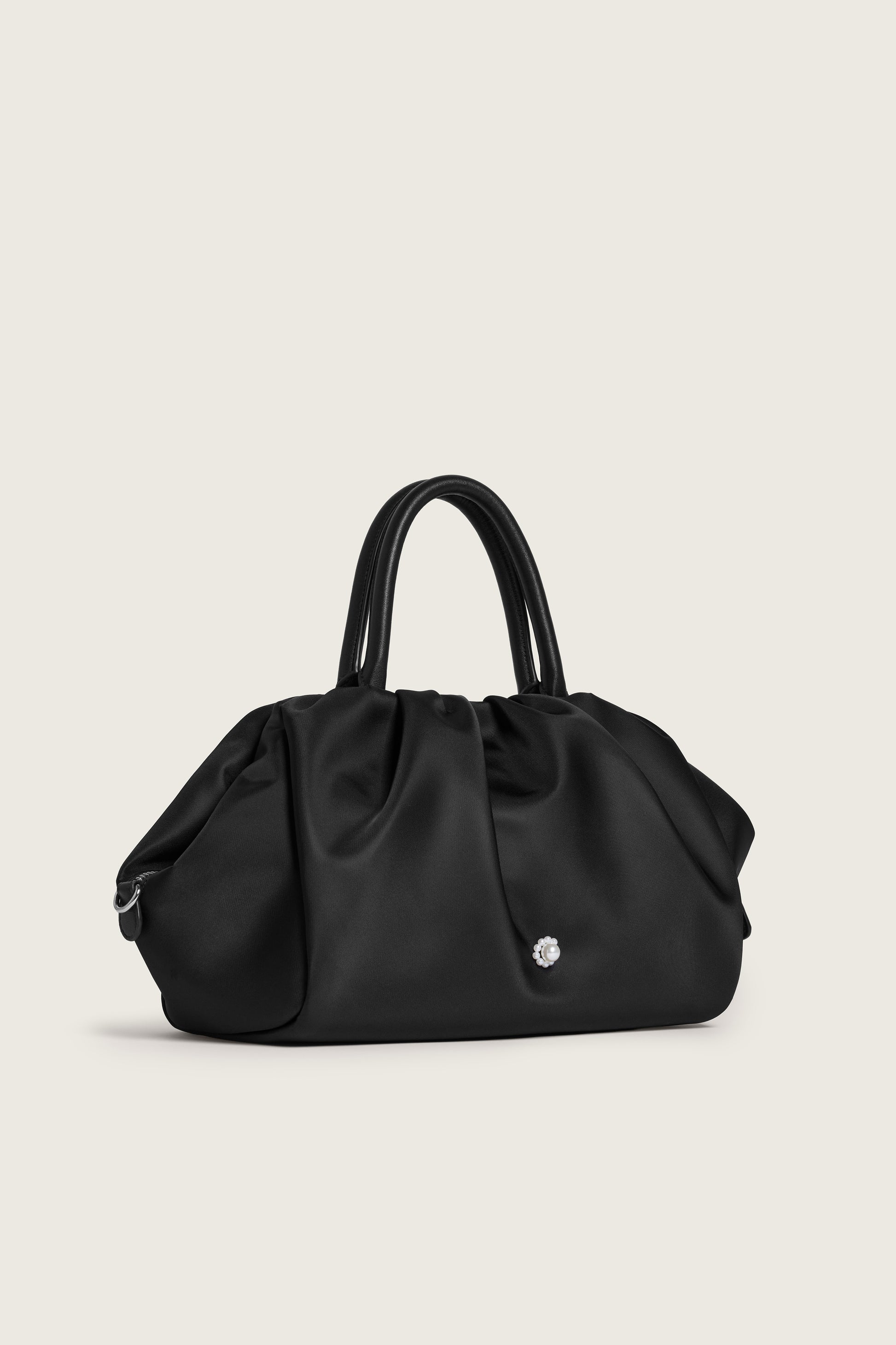 A structured frame bag in durable nylon, featuring a top handle with magnetic snap and zipped closure. Detailed with a fuzzy chenille bow at the centre and crystal embellishment for a signature Simone Rocha finish.