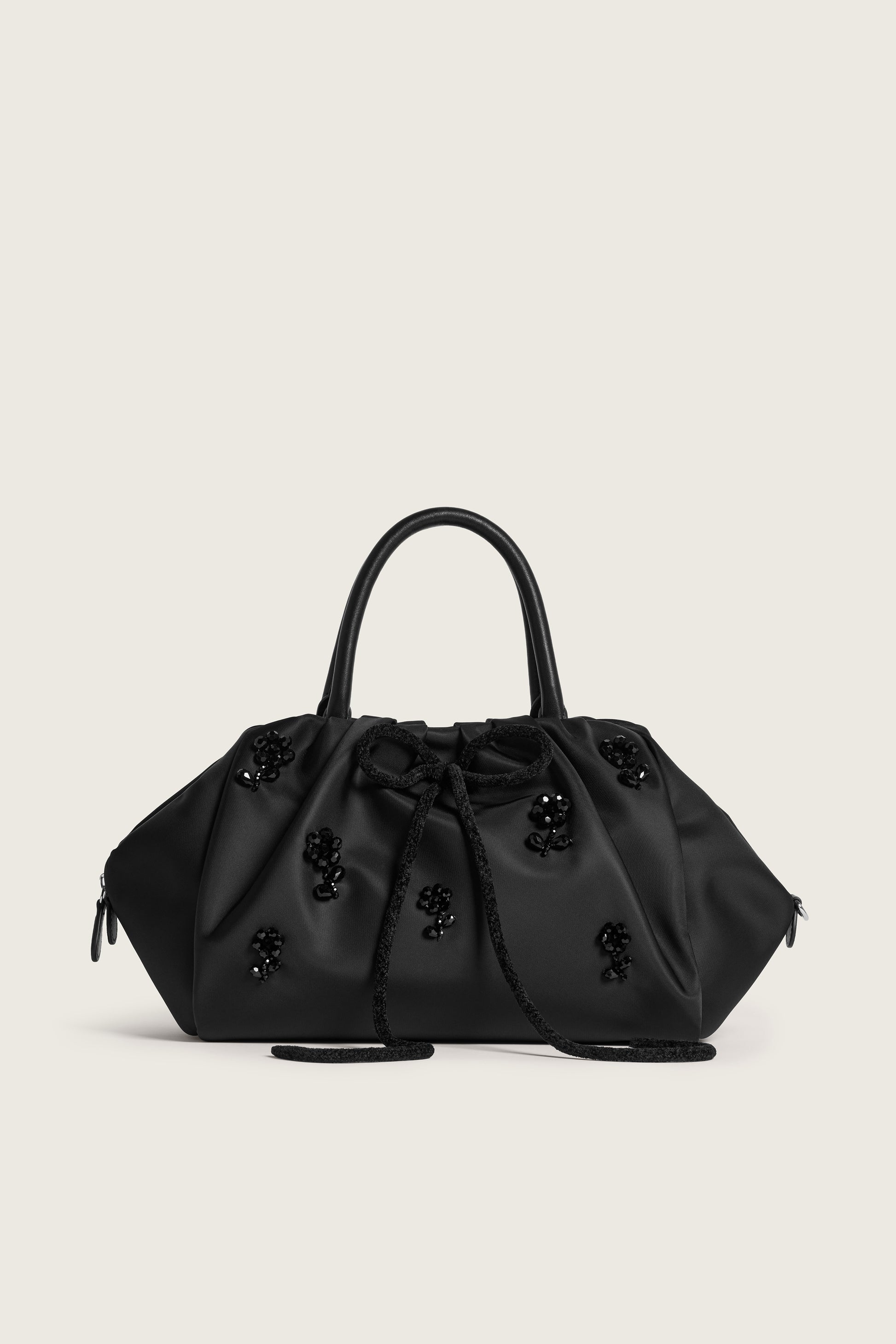 Embellished Gathered Top Handle Bag