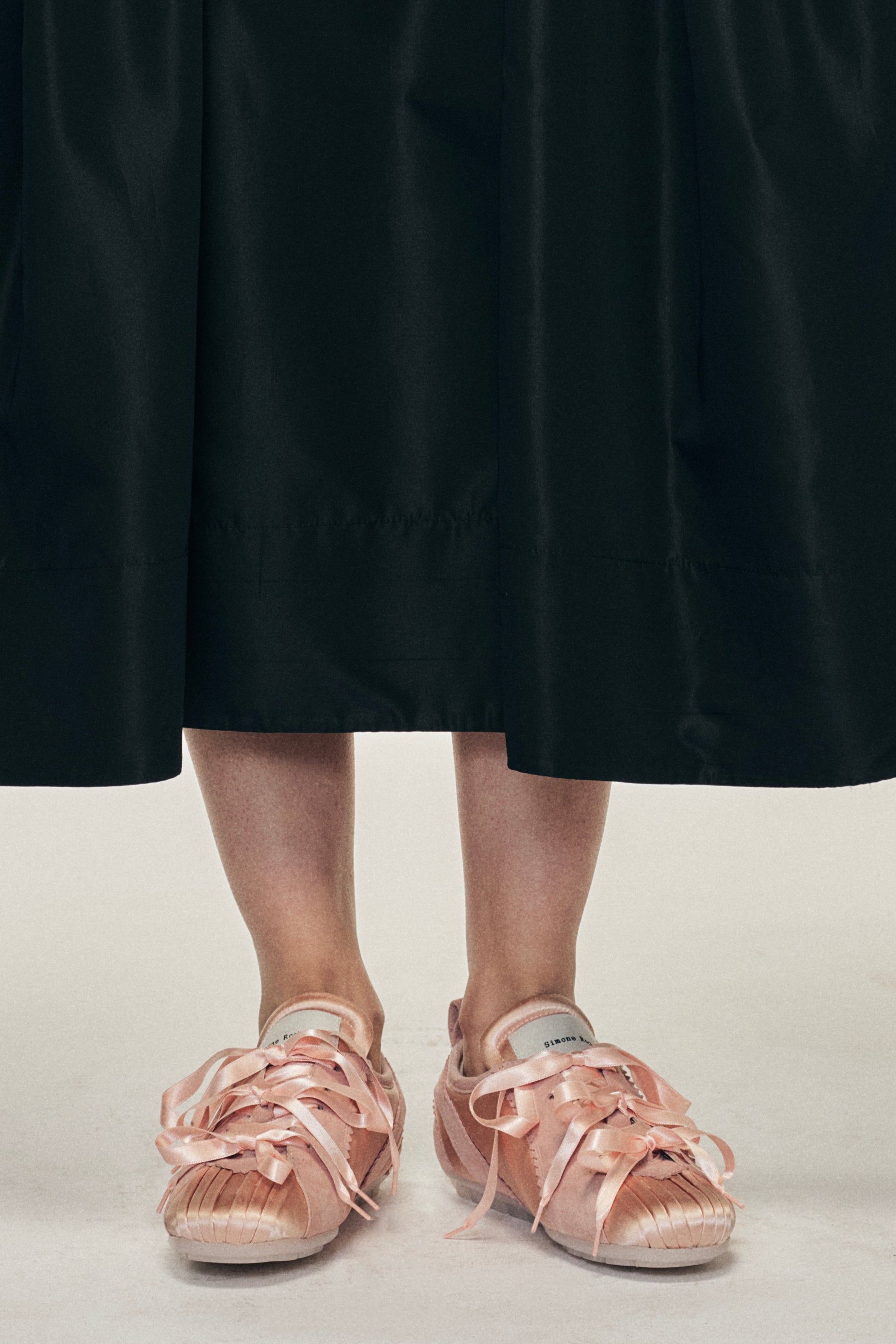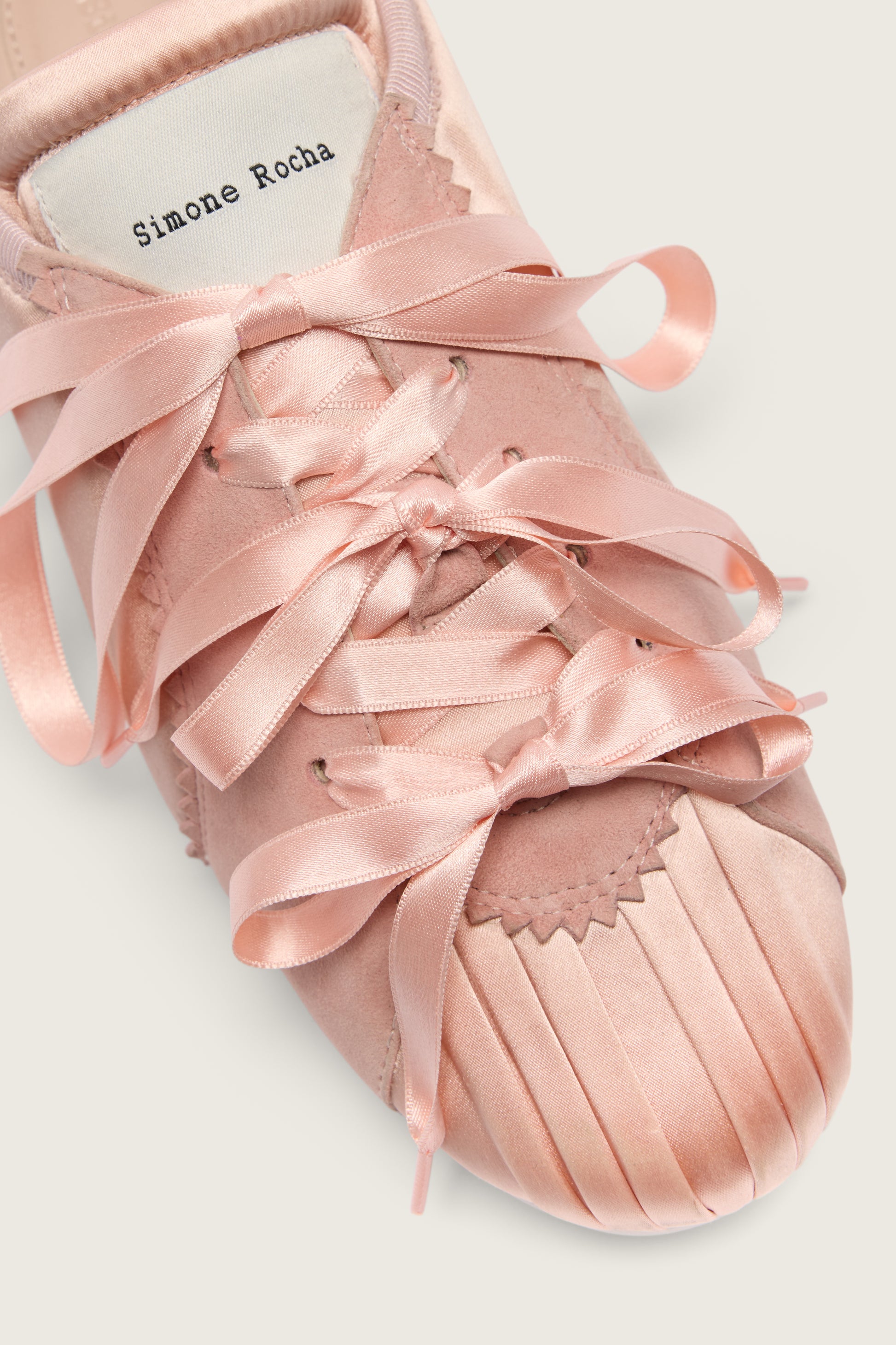 Introducing the Ballerina Grip Trainer, a new take on a ballerina pump with sporty references. It features multiple satin ribbon laces and a branded tongue.