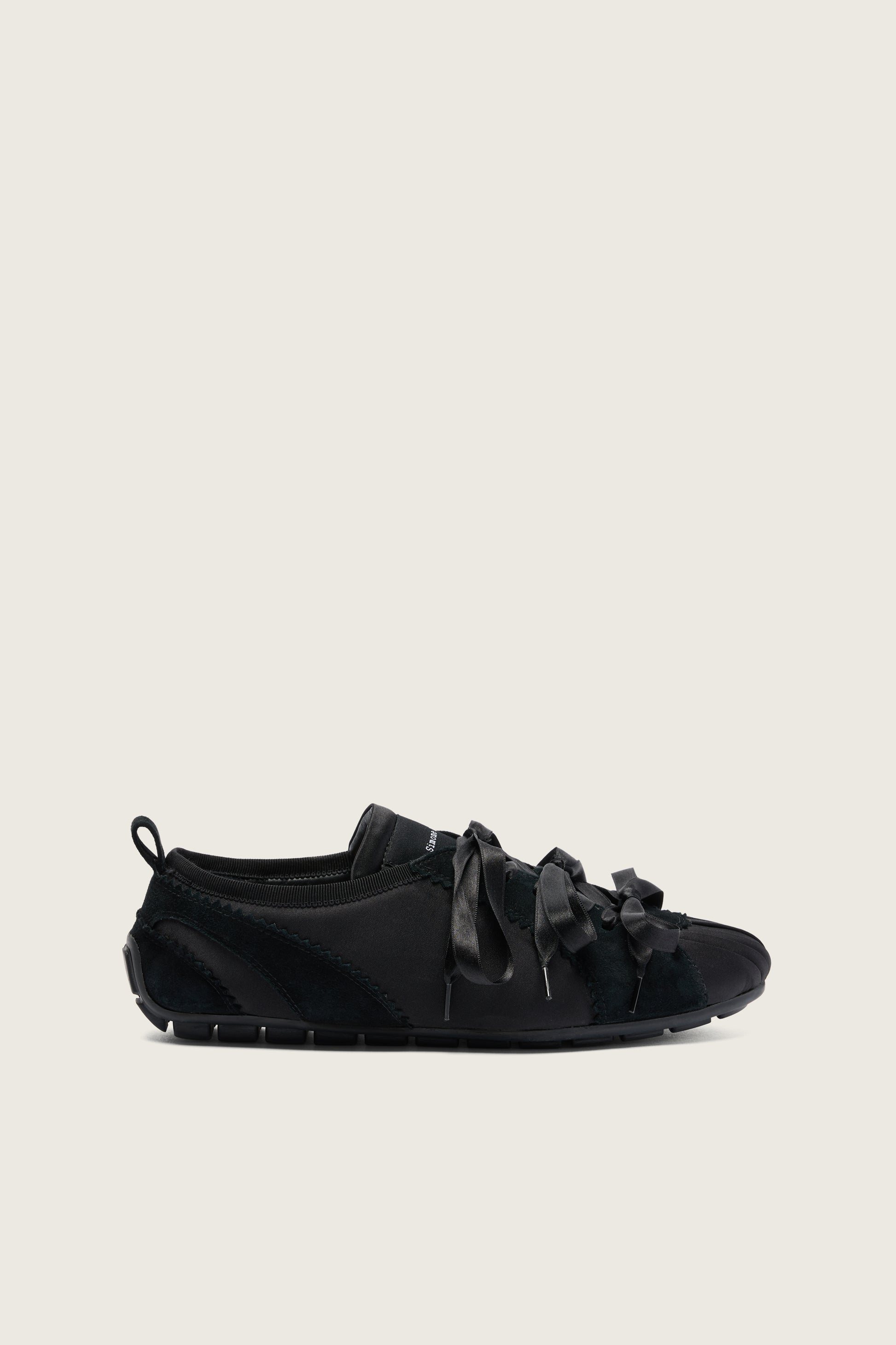 Introducing the Ballerina Grip Trainer, a new take on a ballerina pump with sporty references. It features multiple satin ribbon laces and a branded tongue. This style also comes in women's sizes.