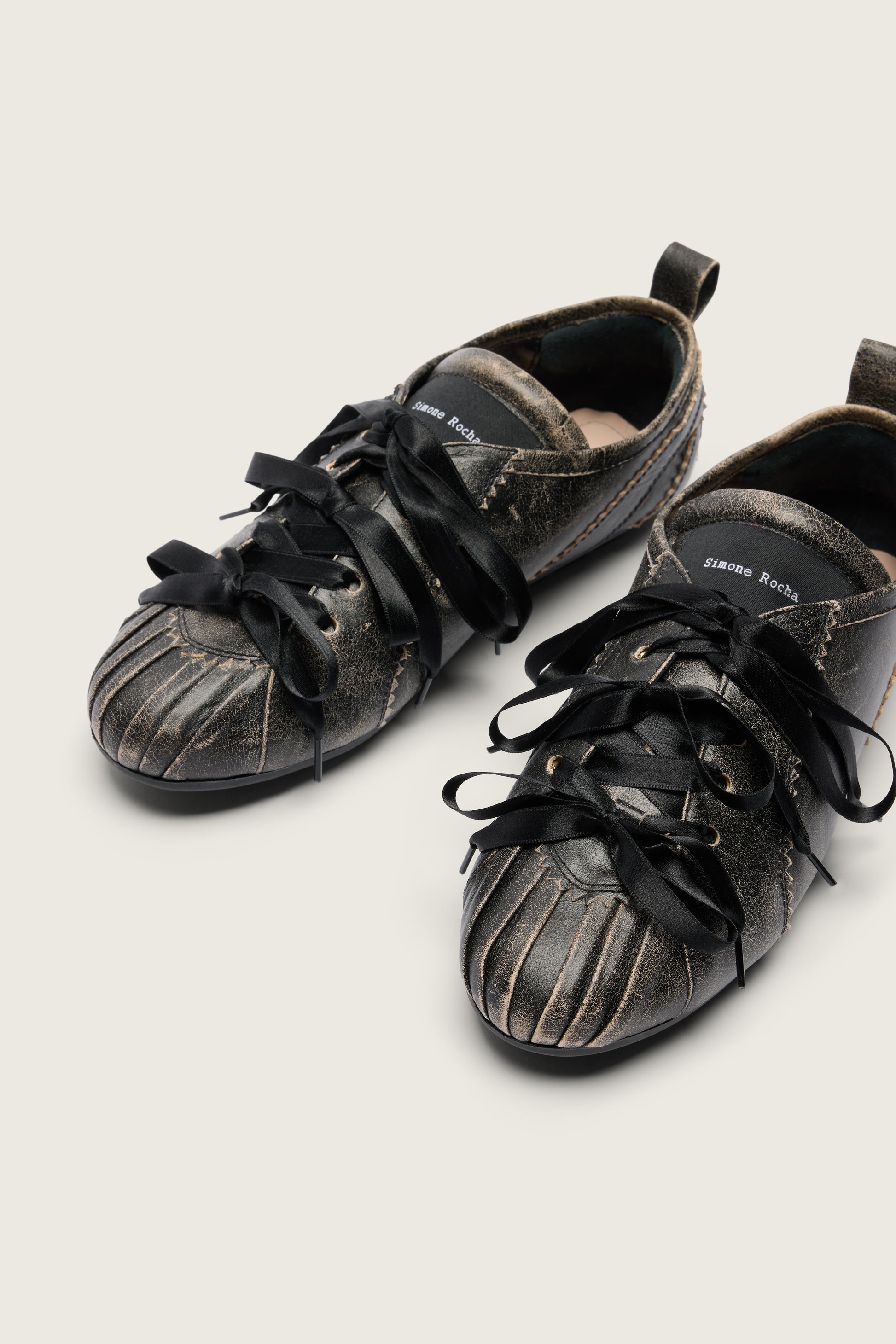 Introducing the Ballerina Grip Trainer, a new take on a ballerina pump with sporty references. It features multiple satin ribbon laces and a branded tongue. This style also comes in women's sizes.