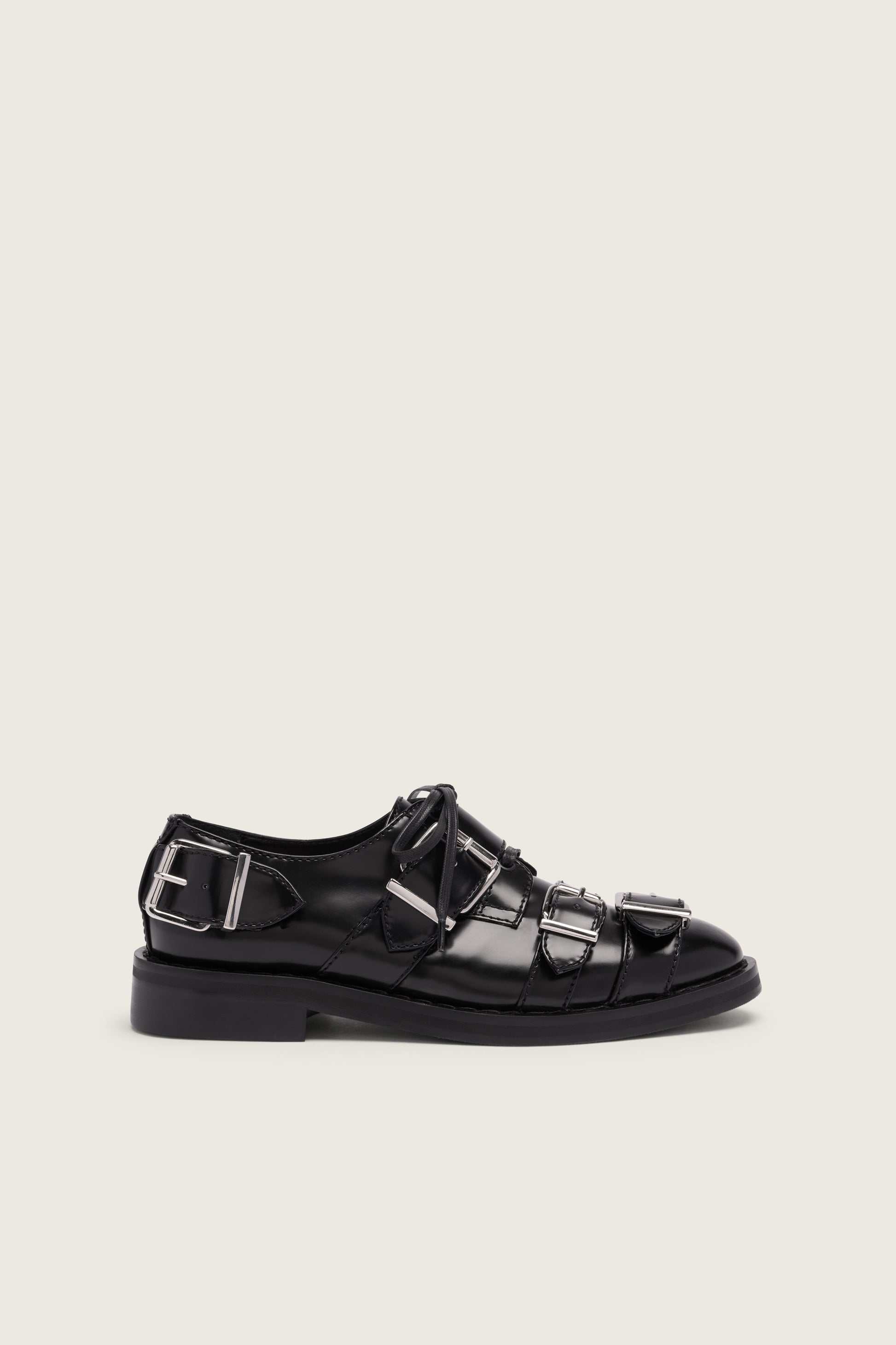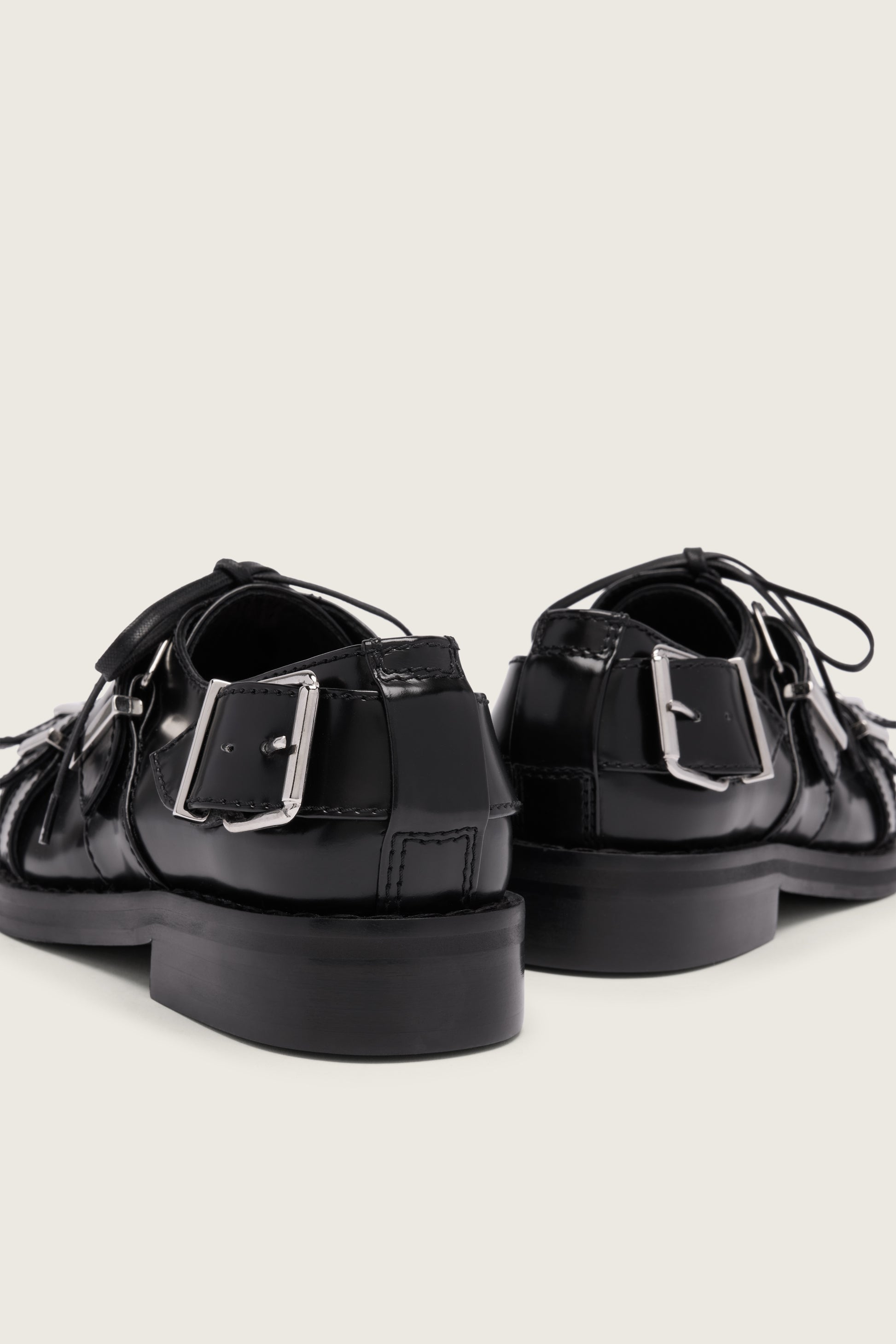 As seen on the runway, this brogue features multiple buckles throughout. It has a refined sleek appearance that pairs perfectly with the men's suiting.