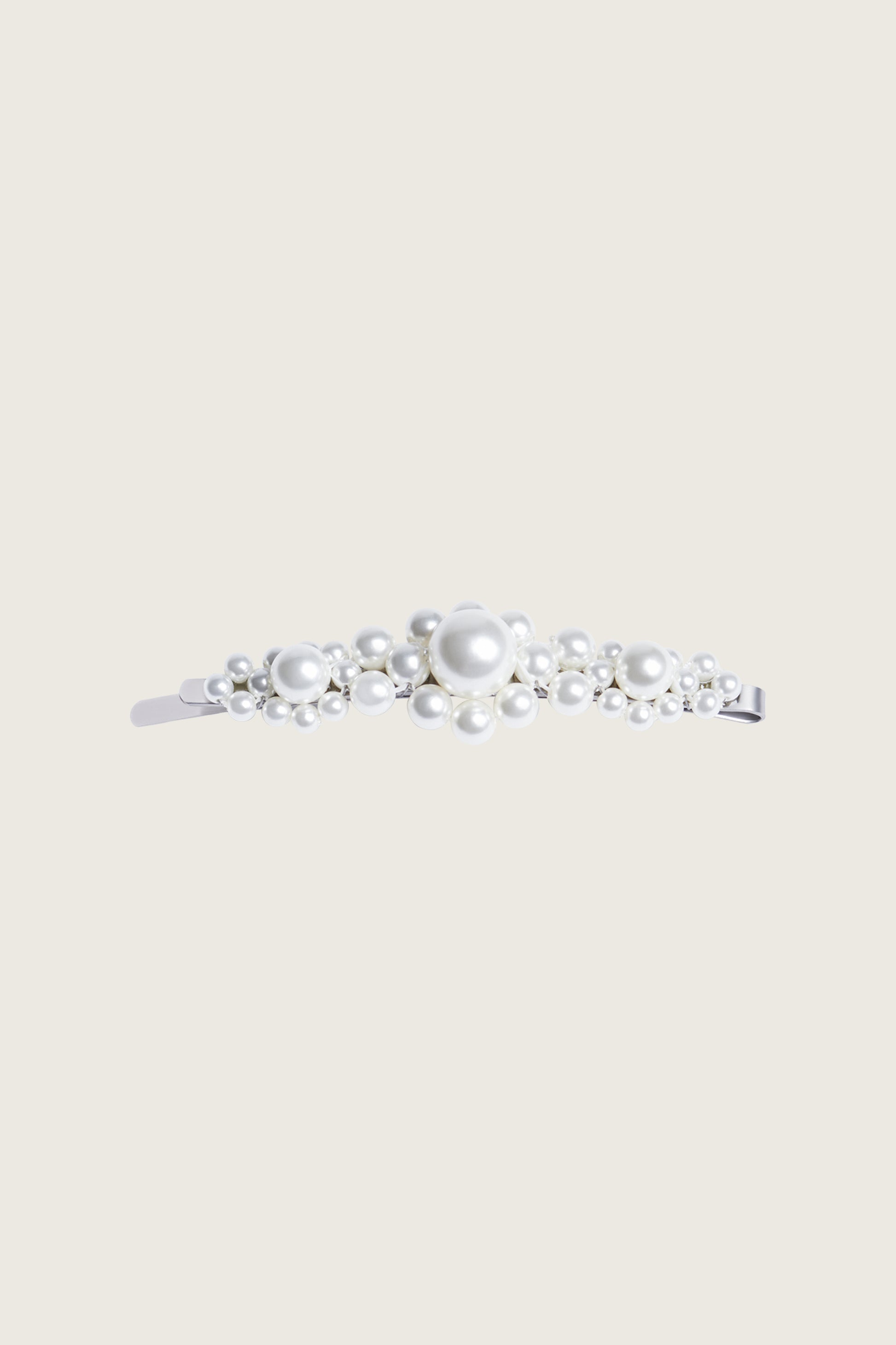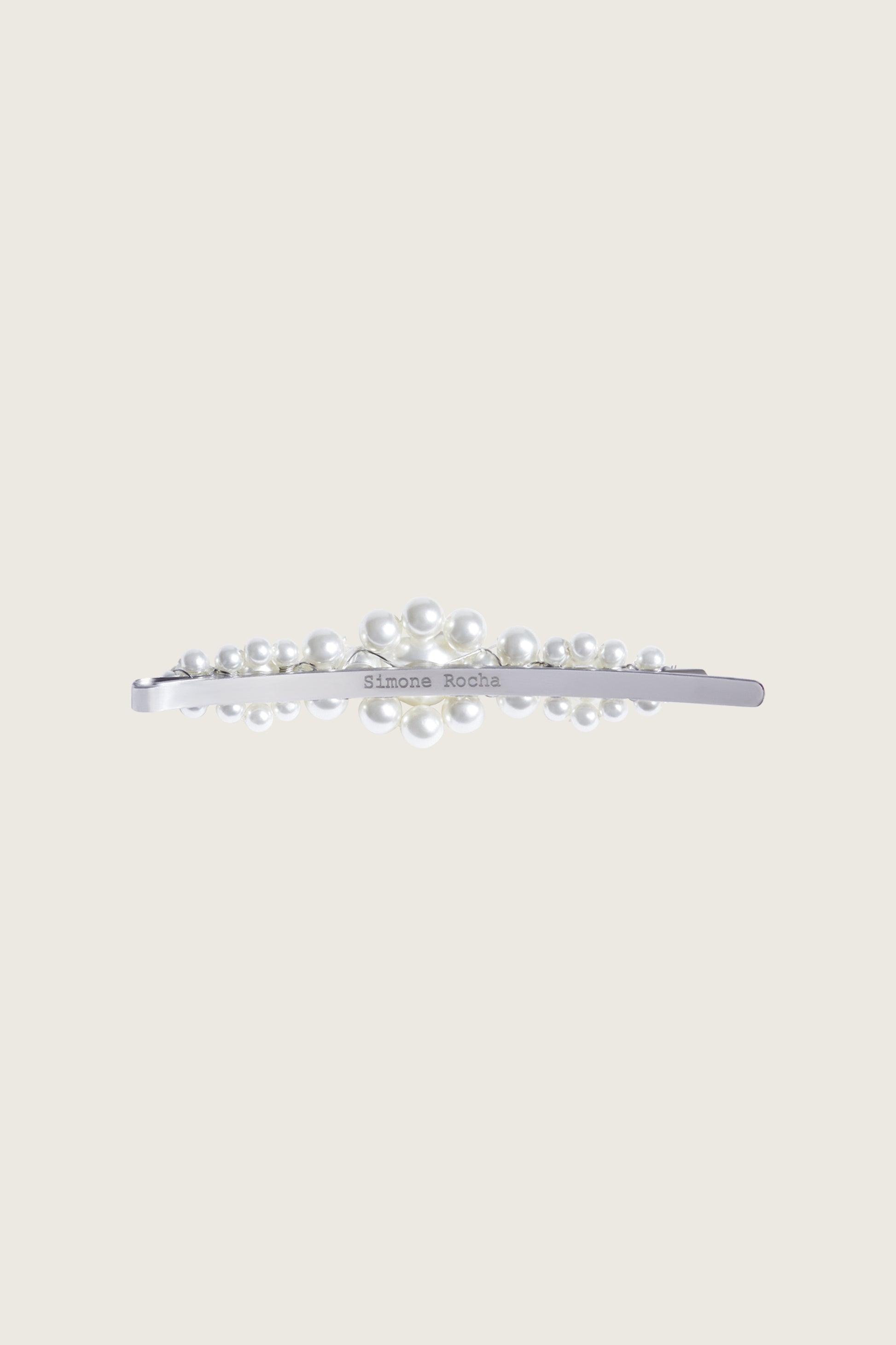 The classic Simone Rocha hair clip - faux pearls are beaded into different floral shapes onto a logo embossed slide. This accessory has become a staple and can enhance any look.