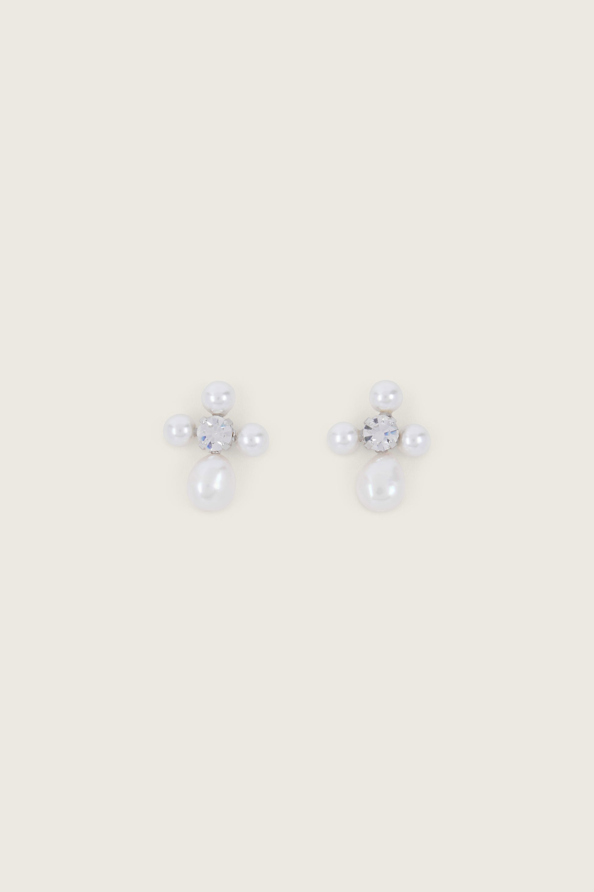 A stud earring comprised of baroque pearls with a petite crystal in the centre, perfect for everyday. Due to the nature of the material, no piece is exactly alike.