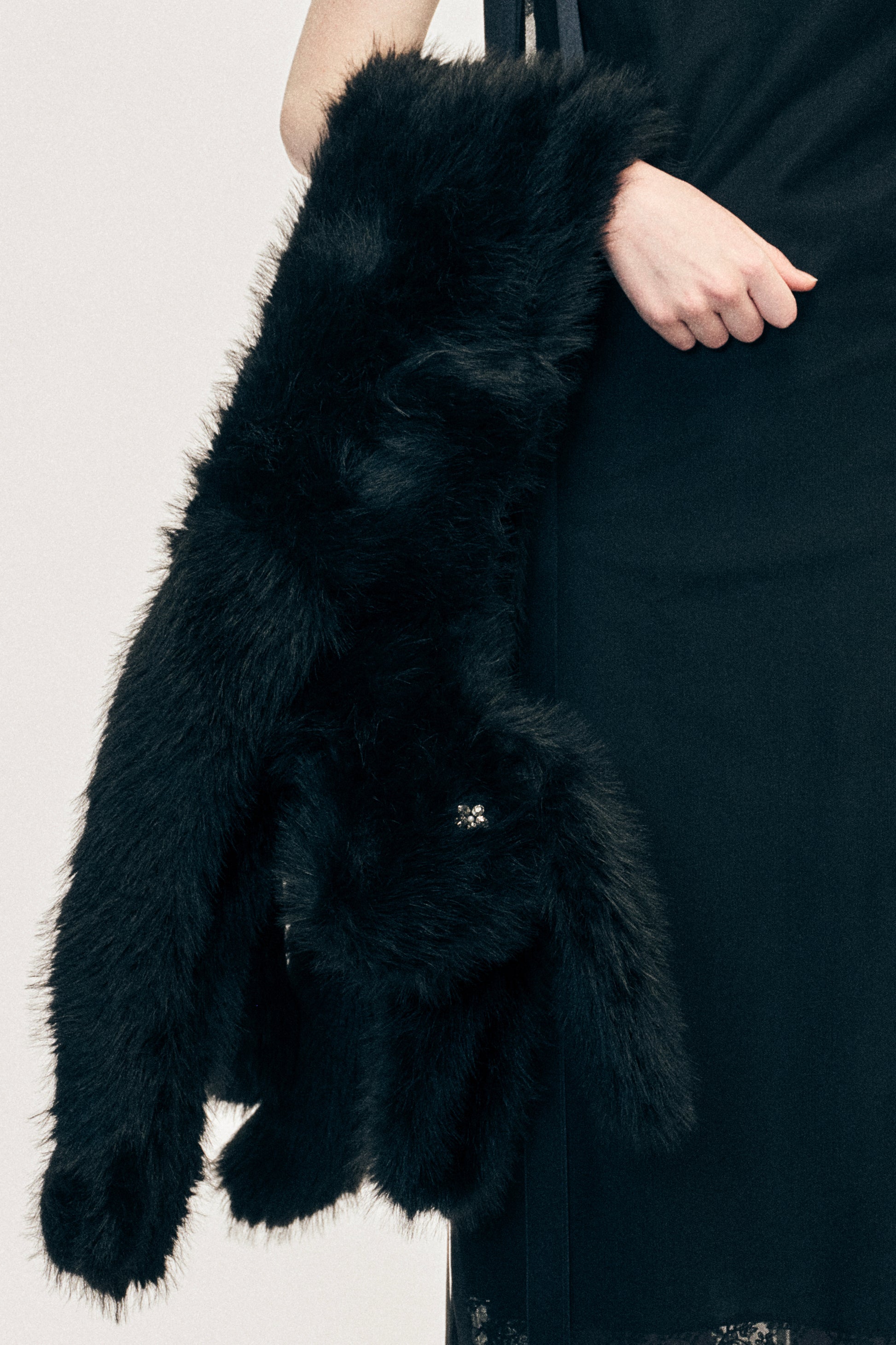 This season's hare motif is translated into a shawl-like scarf, the body is exaggerated into an elongated shape for a playful feeling.