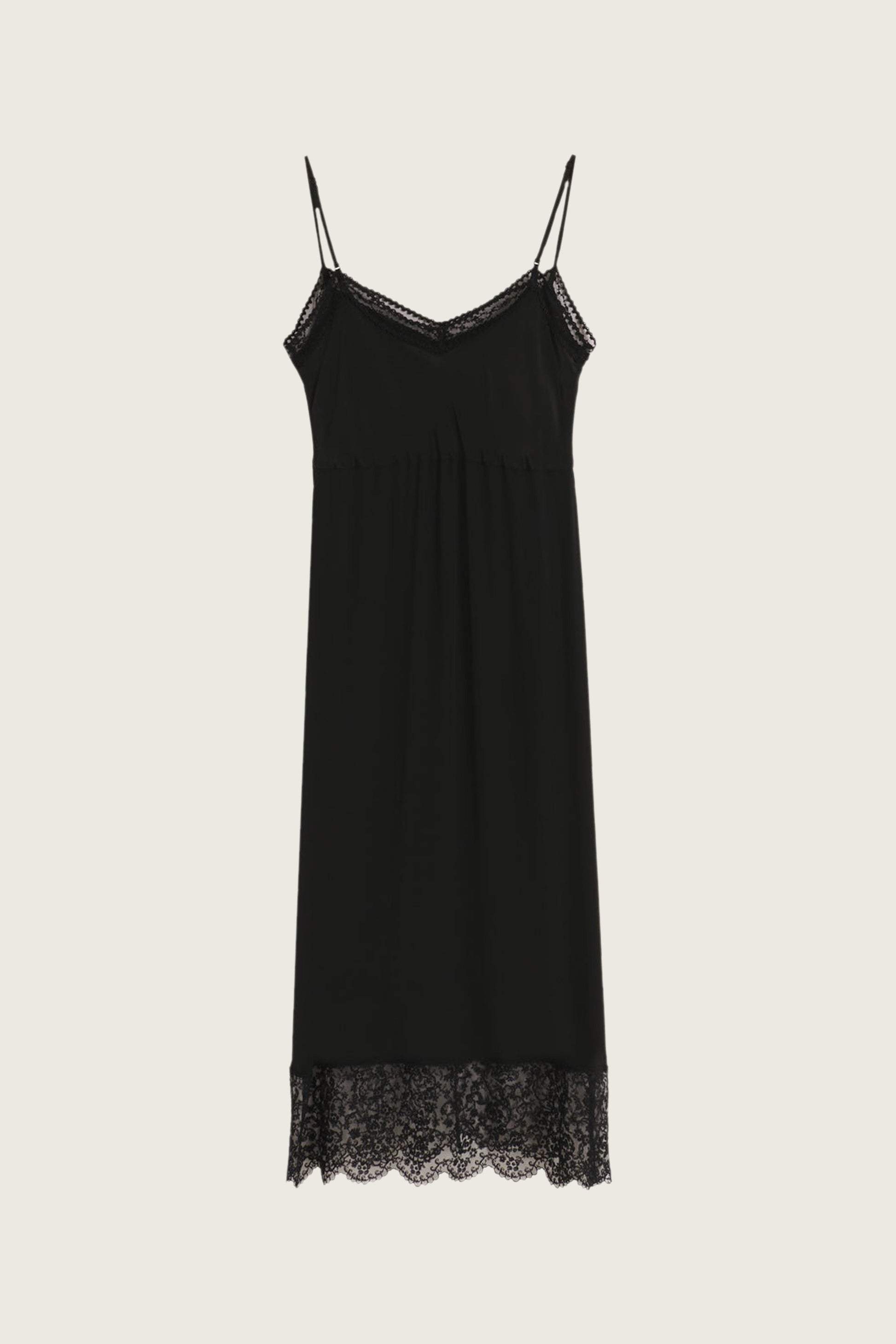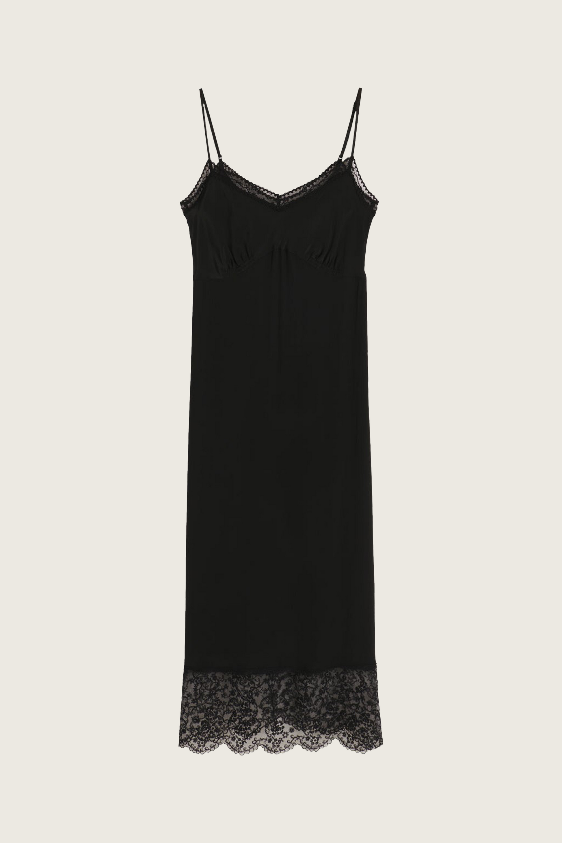 A slip dress made in a silk mix crepe de chine, a classic style from the brand. Featuring a seasonal floral embroidered lace trim and adjustable straps, the perfect layering piece to be worn under our tulle dresses.